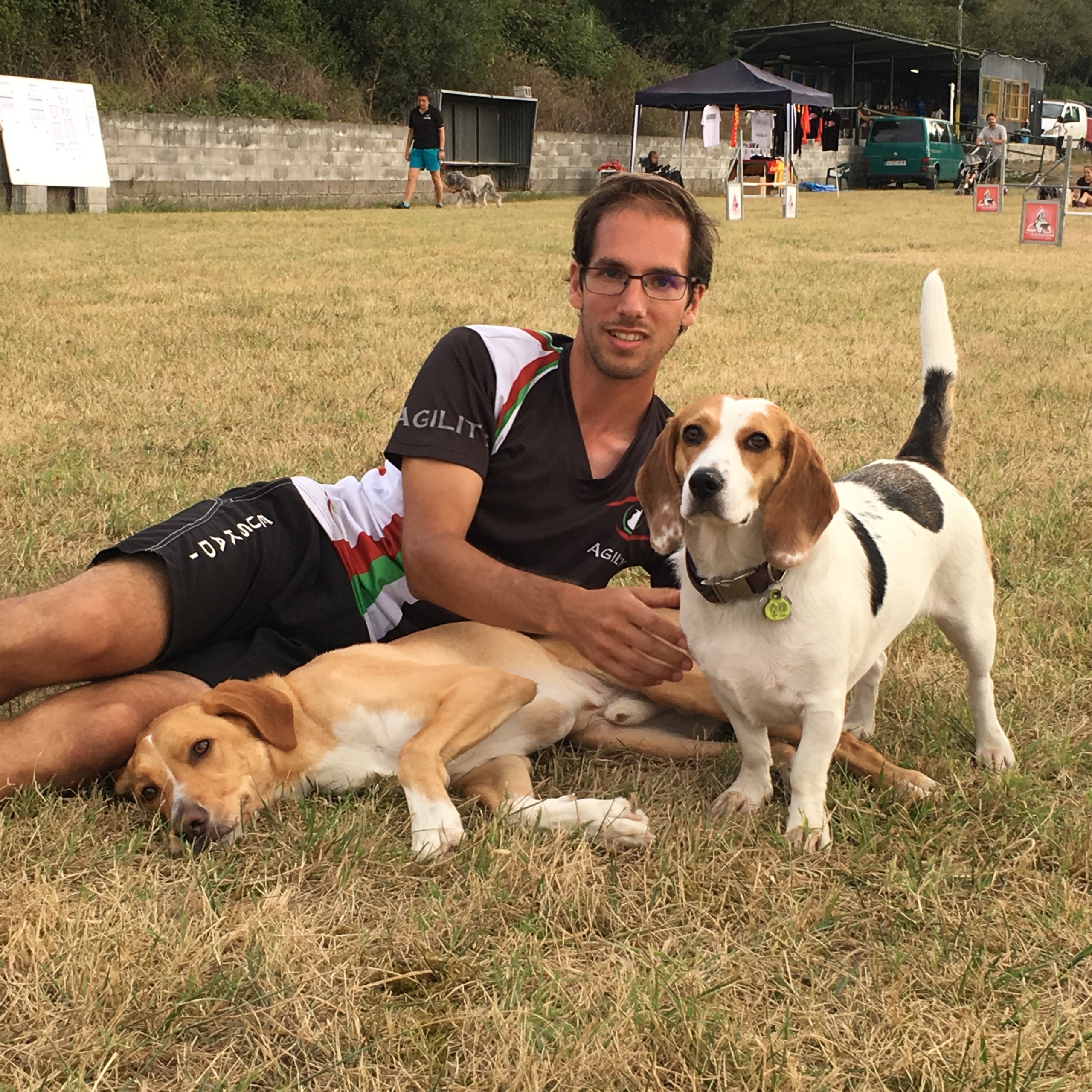 En mayo de 2015 empecé en Agility Euskadi a construir el vínculo con Odín y Noah, vínculo que nos haría aventurarnos en el mundo del Agility, donde gracias a Pedro descubrimos un deporte  que engancha y en el que disfrutar con tus compañeros de vida.
